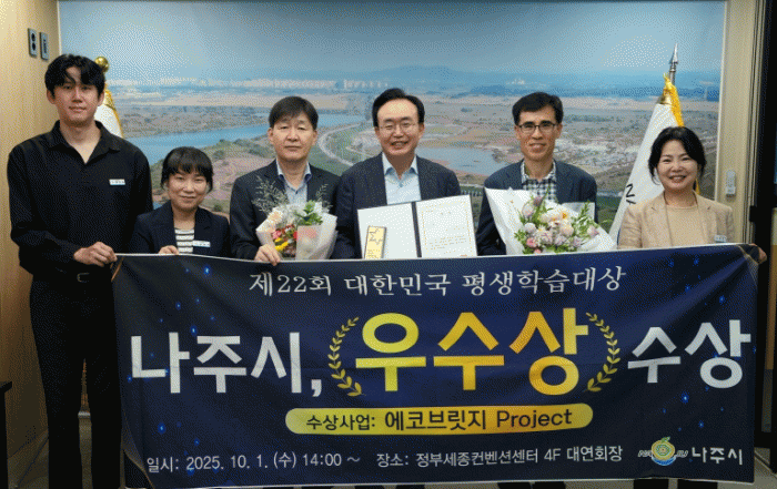 À±º´Å ³ªÁÖ½ÃÀåÀº ¡°À̹ø ¼ö»óÀº Æò»ýÇнÀÀ» ÅëÇØ Áö¼Ó °¡´ÉÇÑ Áö¿ª ¹ßÀüÀ» ¸¸µé¾î°¡´Â ³ªÁֽùΠ¸ðµÎÀÇ ¼º°ú¡±¶ó¸ç ¡°Æò»ýÇнÀ ±â¹ÝÀÇ ÀÚ¿ø¼øÈ¯, ȯ°æ±³À°À» ´õ¿í È®´ëÇØ ³ªÁÖ°¡ ģȯ°æ ÇнÀµµ½Ã·Î ÀÚ¸®¸Å±èÇÒ ¼ö ÀÖµµ·Ï ÃÖ¼±À» ´ÙÇϰڴ١±°í ¸»Çß´Ù.