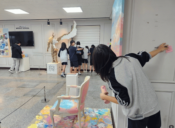 µµ¿øÁß ±ÇÇýÁø ±³»ç´Â ¡°Çб³ Áß¾Ó Çö°üÀÌ ¸¶Ä¡ ¹Ì¼ú°üÀ» ¿Å°Ü¿Â µíÇÑ Âø°¢ÀÌ µç´Ù. ¼ö½Ã·Î Áö³ª°¡´Â °÷¿¡¼ ÀÛǰÀ» °¨»óÇϸç ÇлýµéÀÇ ½É¹ÌÀû °¨¼º ¿ª·®À» ½ÅÀå½ÃŰ´Â ±âȸ°¡ µÇ°í ÀÖ´Ù.¡±¸ç °¨»çÀÇ ¸»À» ÀüÇß´Ù.