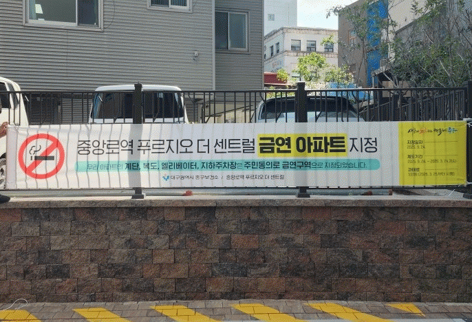[´º½ºÅë ¾È»óµ· ±âÀÚ]´ë±¸ Áß±¸´Â °øµ¿»ýȰ°ø°£ ³» °£Á¢Èí¿¬À¸·ÎºÎÅÍ ÁֹΠ°Ç°À» º¸È£Çϰí ÄèÀûÇÑ ±Ý¿¬ ȯ°æÀ» Á¶¼ºÇϱâ À§ÇØ ¡®´ë±¸¿ª ¼¾Æ®·² ´ë¿øÄŸºô¡¯(ÅÂÆò·Î 224)°ú ¡®Á߾ӷοª Ǫ¸£Áö¿À ´õ ¼¾Æ®·²¡¯(¼¼º·Î 60)À» °¢°¢ Á¦24È£, Á¦25È£ °øµ¿ÁÖÅà ±Ý¿¬±¸¿ªÀ¸·Î ÁöÁ¤Çß´Ù.
