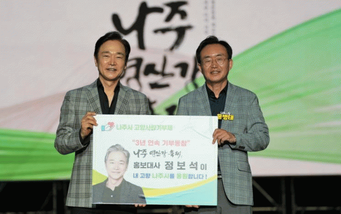 ¡®³ªÁÖ¿µ»ê°ÃàÁ¦¡¯ È«º¸´ë»ç·Î 2³â ¿¬¼Ó Ȱ¾àÇϰí ÀÖ´Â ±¹¹Î¹è¿ì Á¤º¸¼® ¾¾(¿ÞÂÊ)°¡ Áö³ 12ÀÏ ÃàÁ¦ Æó¸·½Ä¿¡¼ À±º´Å ³ªÁÖ½ÃÀå¿¡°Ô °íÇâ»ç¶û±âºÎ±ÝÀ» ±âŹÇß´Ù.