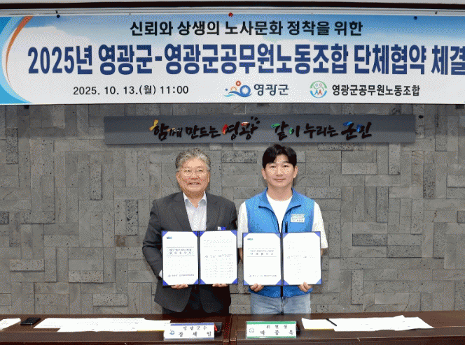 [´º½ºÅë ÃÖ¿ë¼ö ±âÀÚ]¿µ±¤±ºÀº Áö³ 10¿ù 13ÀÏ ±ºÃ» 2Ãþ ¼ÒȸÀǽǿ¡¼ ¿µ±¤±º°ø¹«¿ø³ëµ¿Á¶ÇÕ°ú ¡°2025³â ´ÜüÇù¾à½Ä¡±À» ü°áÇß´Ù.