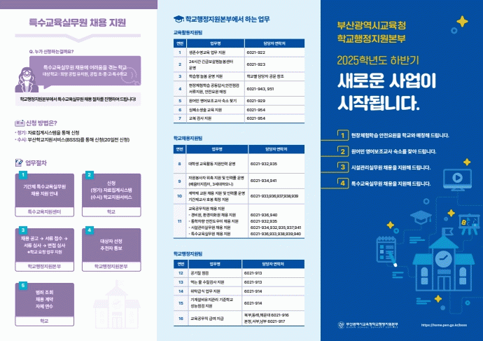 ºÎ»ê±¤¿ª½Ã±³À°Ã»Çб³ÇàÁ¤Áö¿øº»ºÎ´Â 2025Çг⵵ ÇϹݱâºÎÅÍ È®´ë ½ÃÇàµÇ´Â Çб³ Áö¿ø ½Å±Ô »ç¾÷ 4°¡Áö¸¦ ¼Ò°³ÇÏ´Â È«º¸ ¸®Çø´À» Á¦ÀÛÇØ ºÎ»ê °ü³» ¸ðµç Çб³¿¡ ¹èÆ÷ÇÑ´Ù°í 14ÀÏ ¹àÇû´Ù.