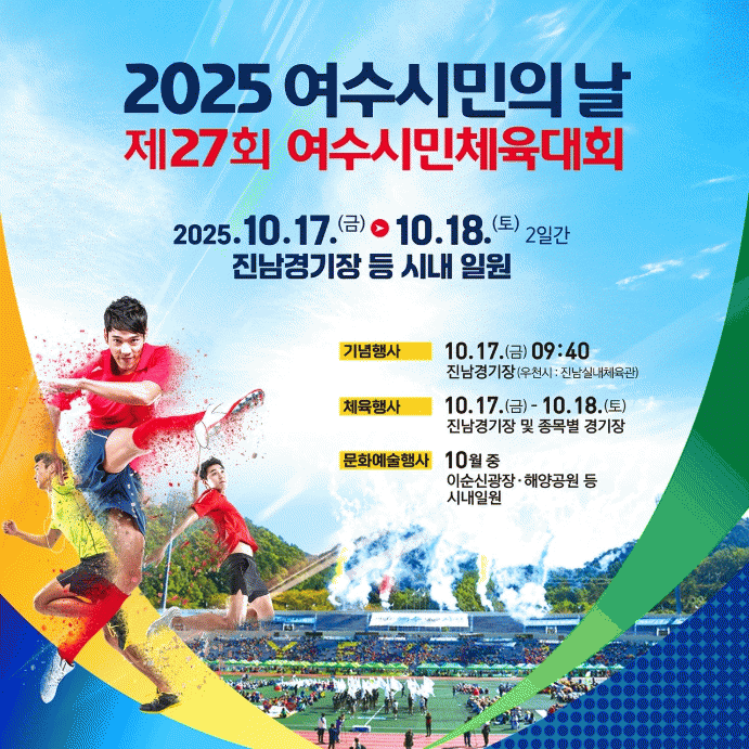 [´º½ºÅë ±è±¤¿ ±âÀÚ]¿©¼ö½Ã´Â ¿À´Â 10¿ù 17ÀÏ(±Ý)ºÎÅÍ 18ÀÏ(Åä)±îÁö ÀÌÆ²°£ Áø³²°æ±âÀå ÀÏ¿ø¿¡¼ ¡®2025 ¿©¼ö½Ã¹ÎÀÇ ³¯¡¯ ±â³äÇà»ç¸¦ °³ÃÖÇÑ´Ù.