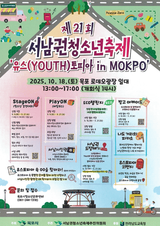 [´º½ºÅë ±è±¤¿ ±âÀÚ]Á¦21ȸ ¼³²±Çû¼Ò³âÃàÁ¦°¡ ¡®À¯½º(YOUTH)ÅäÇÇ¾Æ in MOKPO¡¯¸¦ ÁÖÁ¦·Î ¿À´Â 10¿ù 18ÀÏ(Åä) ¿ÀÈÄ 1½ÃºÎÅÍ 5½Ã±îÁö ¸ñÆ÷ ·Îµ¥¿À±¤Àå ÀÏ´ë¿¡¼ ¿¸°´Ù.