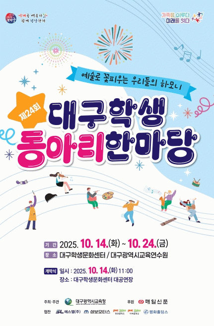 [´º½ºÅë ¾È»óµ· ±âÀÚ] ´ë±¸½Ã±³À°Ã»Àº 10¿ù 14ÀϺÎÅÍ 10¿ù 24ÀϱîÁö ´ë±¸Çлý¹®È¼¾ÅÍ¿Í ´ë±¸±³À°¿¬¼ö¿ø¿¡¼ ¡®Á¦24ȸ ´ë±¸Çлýµ¿¾Æ¸®ÇѸ¶´ç¡¯À» °³ÃÖÇÑ´Ù.