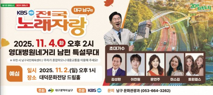 ´ë±¸ ³²±¸, ¿À´Â 11¿ù¡®KBSÀü±¹³ë·¡ÀÚ¶û¡¯°³ÃÖ 10¿ù 15ÀϺÎÅÍ 24ÀϱîÁö ¿¹½ÉÂü°¡ÀÚ Á¢¼ö