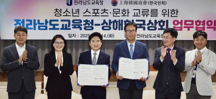 [´º½ºÅë ÃÖ¿ë¼ö ±âÀÚ]Àü¶ó³²µµ±³À°Ã»Àº 14ÀÏ »óÇØÇѱ¹»óȸ¿Í ¡®Ã»¼Ò³â ½ºÆ÷Ã÷¡¤¹®È ±³·ù¸¦ À§ÇÑ ¾÷¹«Çù¾à(MOU)¡¯À» ü°áÇß´Ù.