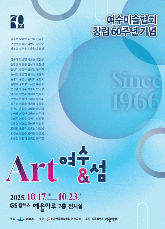 [´º½ºÅë ±è±¤¿ ±âÀÚ]¿©¼ö½Ã´Â ¿À´Â 10¿ù 17ºÎÅÍ 23ÀϱîÁö 7Àϰ£ GSĮŨ½º ¿¹¿ï¸¶·ç Àü½Ã½Ç¿¡¼ ¡®¿©¼ö¹Ì¼úÇùȸ ⸳ 60Áֳ⠱â³ä ±âȹÀü 'Art ¿©¼ö ¡¤ ¼¶'¡¯À» °³ÃÖÇÑ´Ù.