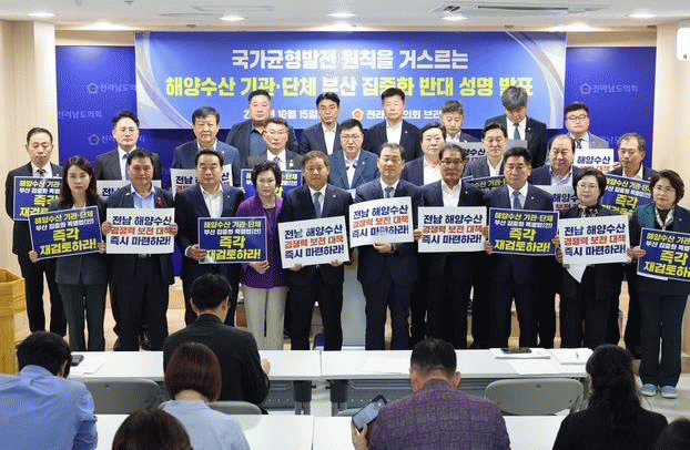 [´º½ºÅë ÃÖ¿ë¼ö ±âÀÚ]Àü¶ó³²µµÀÇȸ ³ó¼ö»êÀ§¿øÈ¸ ÃÖµ¿ÀÍ ÀÇ¿ø(´õºÒ¾î¹ÎÁִ硤¿©¼ö)Àº 10¿ù 15ÀÏ Á¦394ȸ ÀÓ½Ãȸ µµÀÇȸ ºê¸®Çη뿡¼ '±¹°¡±ÕÇü¹ßÀü ¿øÄ¢À» °Å½º¸£´Â ÇØ¾ç¼ö»ê ±â°ü¡¤´Üü ºÎ»ê ÁýÁßÈ ¹Ý´ë ¼º¸í¼'¸¦ ¹ßÇ¥Çß´Ù.