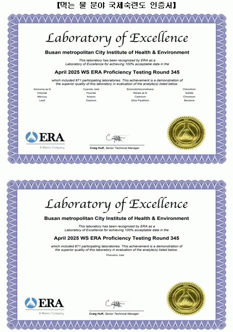 [´º½ºÅë °û¸íÈÆ ±âÀÚ]ºÎ»ê½Ã º¸°Çȯ°æ¿¬±¸¿øÀº ¸Ô´Â ¹° ºÐ¾ß ºÐ¼® ´É·Â °ËÁõÀ» À§ÇØ Âü°¡ÇÑ ¹Ì±¹ ȯ°æÀÚ¿øÇùȸ(ERA) ÁÖ°ü ±¹Á¦¼÷·Ãµµ Æò°¡¿¡¼ Àü Ç׸ñ '¸¸Á·' ÆÇÁ¤À» ¹Þ¾Æ 'ÃÖ°í µî±Þ' ÀÎÁõÀ» ȹµæÇß´Ù°í ¹àÇû´Ù.