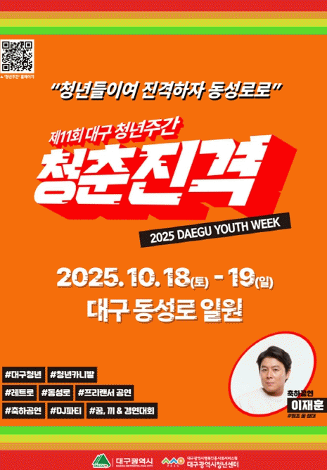 [´º½ºÅë ¾È»óµ· ±âÀÚ] ´ë±¸±¤¿ª½Ã´Â 10¿ù 18ÀϺÎÅÍ 19ÀϱîÁö ÀÌÆ²°£, µ¿¼º·Î ÀÏ´ë(CGV´ë±¸ÇÑÀÏ~µ¿¼º·Î28¾ÆÆ®½ºÄù¾î~±¸ Áß¾ÓÆÄÃâ¼Ò)¿¡¼ ¡®2025 ´ë±¸Ã»³âÁÖ°£¡¯À» °³ÃÖÇÑ´Ù.