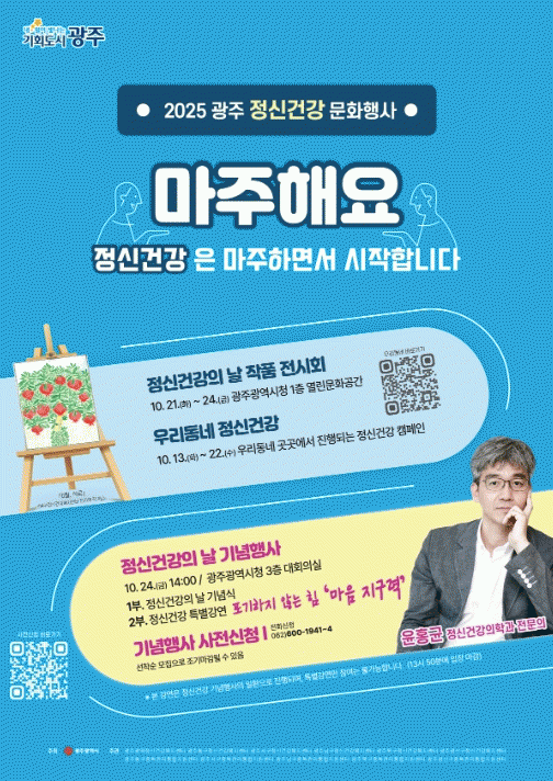 [´º½ºÅë ±è±¤¿ ±âÀÚ]±¤ÁÖ±¤¿ª½Ã´Â ¡®Á¤½Å°Ç° È«º¸ÁÖ°£¡¯(10¿ù 10~24ÀÏ)À» ¸Â¾Æ ½Ã¹ÎÀÇ ¸¶À½ °Ç° ÁõÁøÀ» À§ÇÑ ´Ù¾çÇÑ ¹®ÈÇà»ç¸¦ ¿¬´Ù.