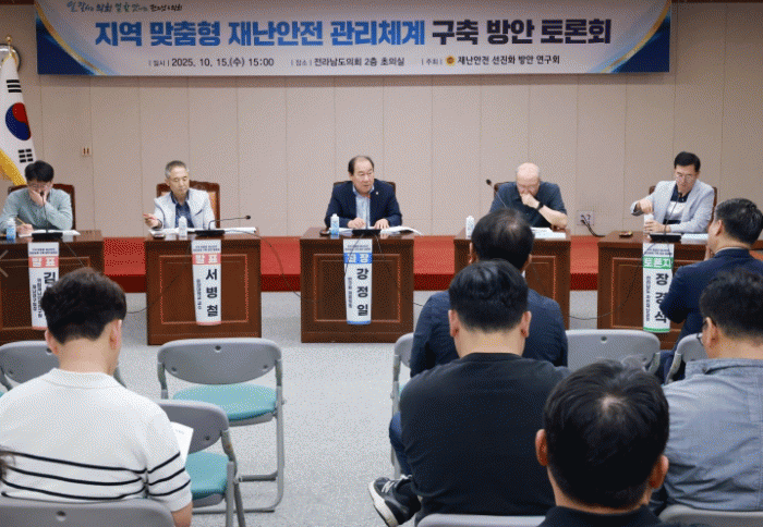 [´º½ºÅë ÃÖ¿ë¼ö ±âÀÚ]Àü¶ó³²µµÀÇȸ ÀÇ¿ø ¿¬±¸´ÜüÀÎ'Àç³¾ÈÀü ¼±ÁøÈ ¹æ¾È ¿¬±¸È¸'´Â Áö³ 10¿ù 15ÀÏ Àü¶ó³²µµÀÇȸ ÃÊÀǽǿ¡¼ °Á¤ÀÏ ´ëÇ¥ÀÇ¿ø(±¤¾ç2) ÁÖÀç·Î ¡®Áö¿ª ¸ÂÃãÇü Àç³¾ÈÀü °ü¸®Ã¼°è ±¸Ãà ¹æ¾È¡¯¿¡ ´ëÇÑ Åä·Ðȸ¸¦ °³ÃÖÇß´Ù.