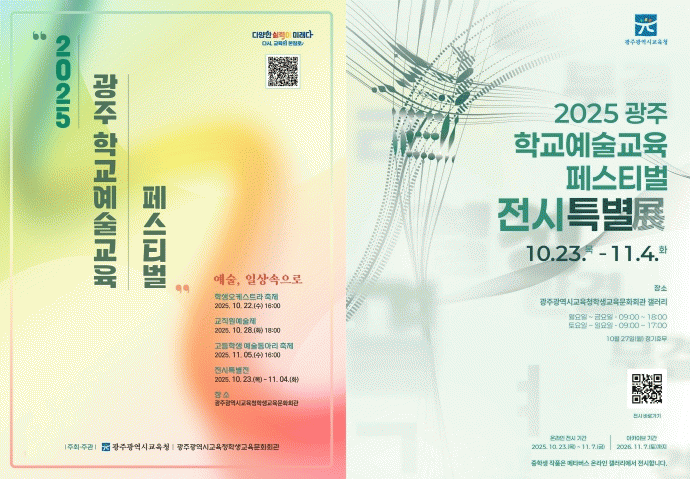 [´º½ºÅë ÃÖ¿ë¼ö ±âÀÚ]±¤Áֽñ³À°Ã»Àº ¿À´Â 22ÀϺÎÅÍ 11¿ù 5ÀϱîÁö Çлý±³À°¹®Èȸ°ü¿¡¼ ¡®2025 ±¤ÁÖ Çб³¿¹¼ú±³À° Æä½ºÆ¼¹ú¡¯À» °³ÃÖÇÑ´Ù.