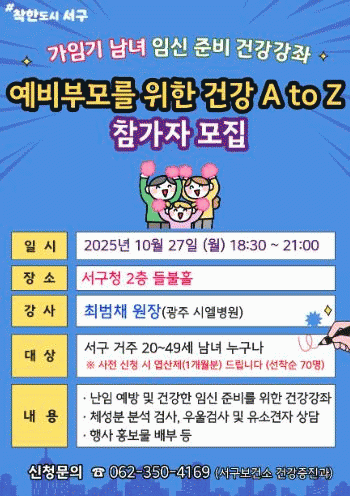 ¼±¸´Â ¿À´Â 27ÀÏ ¼±¸Ã» µéºÒȦ¿¡¼ ³ÀÓÄ¡·á Àü¹®°¡¸¦ ÃÊÃ»ÇØ ¡®¿¹ºñºÎ¸ð¸¦ À§ÇÑ °Ç° A to Z¡¯ °Ç°°Á¸¦ ¿î¿µÇÑ´Ù.