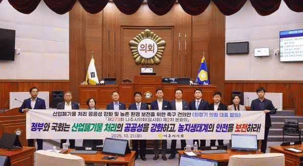 [´º½ºÅë ±è±¤¿ ±âÀÚ]³ªÁÖ½ÃÀÇȸ´Â 21ÀÏ Á¦273ȸ ÀÓ½Ãȸ Á¦2Â÷ º»È¸ÀǸ¦ ¿°í ¡®»ê¾÷Æó±â¹° ó¸® °ø°ø¼º °È ¹× ³óÃÌ È¯°æ º¸ÀüÀ» À§ÇÑ Ã˱¸ °ÇÀǾȡ¯À» äÅÃÇß´Ù.
