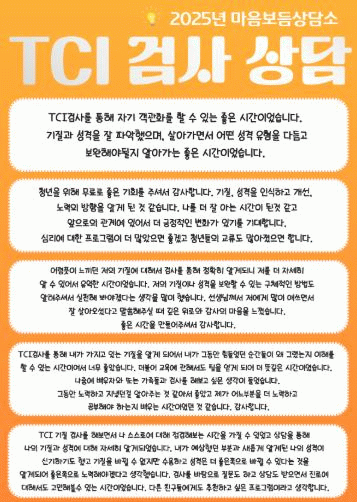 ±¤¾çû³â²ÞÅÍ, û³â ½É¸®Áö¿ø ÇÁ·Î±×·¥ ¡®¸¶À½º¸µë»ó´ã¼Ò¡¯ ¼º·á - û³âÀÏÀÚ¸®°ú(TCI °Ë»ç»ó´ã ³»´ãÀÚ Èıâ)
