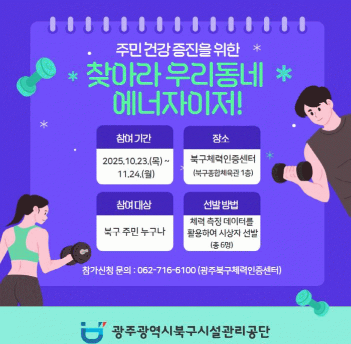 [´º½ºÅë ±è±¤¿ ±âÀÚ]±¤ÁÖ±¤¿ª½ÃºÏ±¸½Ã¼³°ü¸®°ø´ÜÀº Áö¿ª ÁֹεéÀÇ Ã¼·Â ÁõÁø°ú °Ç°ÇÑ »ýȰ ½À°ü Çü¼ºÀ» À§ÇØ ¡®Ã£¾Æ¶ó ¿ì¸®µ¿³× ¿¡³ÊÀÚÀÌÀú!¡¯ 2±â ¼±¹ß´ëȸ¸¦ °³ÃÖÇÑ´Ù°í ¹àÇû´Ù.