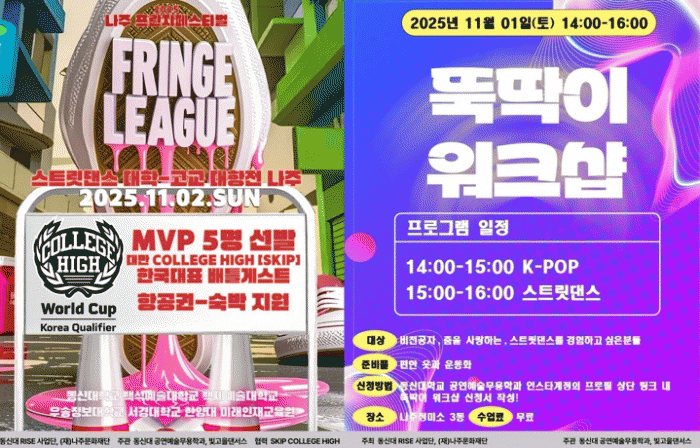 ¶ÇÇÑ ¡®µ¿½Å´ëÇб³ 113 STREET¡¯°ú ¡®ÇѾç¹Ì·¡ÀÎÀç±³À°¿ø FINALLY¡¯ ÆÀÀÌ ÃàÇϰø¿¬À» ¼±º¸ÀÏ ¿¹Á¤ÀÌ´Ù.