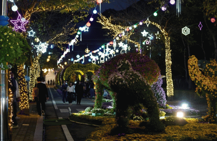 °ø·æ, ²É ÅͳÎ, ij¸¯ÅÍ µî °¢¾ç°¢»öÀÇ Á¶Çü¹°À» Ȱ¿ëÇÑ 4°³ÀÇ Å׸¶Á¸, ºÐÀç±¹È Àü½ÃÀå µîÀÌ 3¸¸¿©Á¡ ´Ù¾çÇÑ ±¹È·Î ¹°µé°í, ¾ß°£¿¡´Â LED °æ°ü Á¶¸íÀ¸·Î ´õ¿í ¾Æ¸§´Ù¿öÁø´Ù.