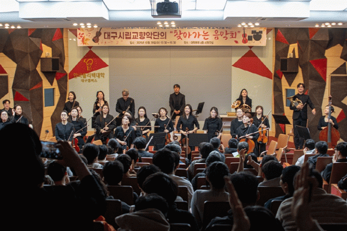 [´º½ºÅë ¾È»óµ· ±âÀÚ]  ´ë±¸¹®È¿¹¼úÁøÈï¿ø »êÇÏ ´ë±¸½Ã¸³±³Çâ¾Ç´Ü(À½¾Ç°¨µ¶ °â »óÀÓÁöÈÖÀÚ ¹éÁøÇö)ÀÌ 10¿ù 29ÀÏ Çѱ¹Æú¸®ÅØ´ëÇÐ ´ë±¸Ä·ÆÛ½º º»ºÎ 4Ãþ ½Ãû°¢½Ç¿¡¼ ¿ÃÇØ ¸¶Áö¸· ¡®Ã£¾Æ°¡´Â À½¾Çȸ¡¯¸¦ ¼º·áÇß´Ù.