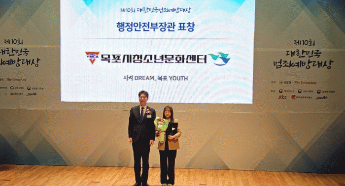 [´º½ºÅë ±è±¤¿ ±âÀÚ]¸ñÆ÷½Ãû¼Ò³â¹®È¼¾ÅÍ(¼¾ÅÍÀå À̼öÁø)´Â Áö¿ª»çȸ À§±â û¼Ò³â ¼±µµ¿Í ¹üÁË¿¹¹æ¿¡ ±â¿©ÇÑ °ø·Î¸¦ ÀÎÁ¤¹Þ¾Æ Áö³ 10¿ù 28ÀÏ ¿¸° ¡®Á¦10ȸ ´ëÇѹα¹ ¹üÁË¿¹¹æ´ë»ó¡¯½Ã»ó½Ä(°æÂûû¡¤Áß¾ÓÀϺ¸¡¤JTBC °øµ¿ ÁÖ°ü)¿¡¼ ÇàÁ¤¾ÈÀüºÎÀå°ü»óÀ» ¼ö»óÇß´Ù.