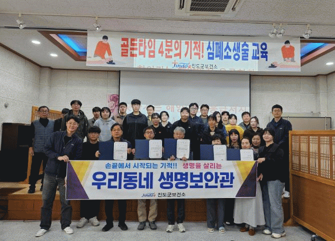 [´º½ºÅë ÃÖ¿ë¼ö ±âÀÚ]Áøµµ±ºÀº Áö³ 10¿ù 29ÀÏ¿¡ Áøµµ±ºº¸°Ç¼Ò¿¡¼ ÀÀ±ÞȯÀÚ ¹ß»ý ½Ã ½Å¼ÓÇÏ°Ô ´ëÀÀÇÒ ¼ö ÀÖµµ·Ï ½ÉÆó¼Ò»ý¼ú(CPR) ±³À°À» ÁøÇàÇϰí, ±³À° ¼ö·áÀÚ¸¦ ¡®¿ì¸®µ¿³× »ý¸íº¸¾È°ü¡¯À¸·Î À§ÃËÇß´Ù.