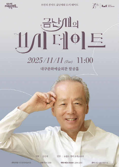 [´º½ºÅë ¾È»óµ· ±âÀÚ] ´ë±¸¹®È¿¹¼úȸ°üÀº ¿À´Â 11¿ù 11ÀÏ ¿ÀÀü 11½Ã, ÆÈ°øÈ¦¿¡¼ ±âȹ°ø¿¬ ¡®±Ý³»õÀÇ 11½Ã µ¥ÀÌÆ® - 11¿ù¡¯À» ¼±º¸ÀδÙ.