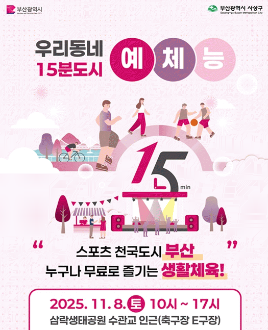 [´º½ºÅë °û¸íÈÆ ±âÀÚ]ºÎ»ê½Ã´Â ¿À´Â 11¿ù 8ÀÏ ¿ÀÀü 10½ÃºÎÅÍ ¿ÀÈÄ 5½Ã±îÁö »ï¶ô»ýŰø¿ø ³» ¼ö°ü±³ ¼öº¯°ø¿ø¿¡¼ '¿ì¸®µ¿³× 15ºÐµµ½Ã ¿¹Ã¼´É' Çà»ç¸¦ °³ÃÖÇÑ´Ù°í ¹àÇû´Ù.