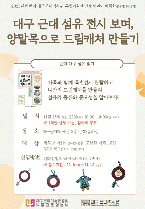 [´º½ºÅë ¾È»óµ· ±âÀÚ] (Àç)´ë±¸¹®È¿¹¼úÁøÈï¿ø ¹Ú¹°°ü¿î¿µº»ºÎ ¼Ò¼Ó ´ë±¸±Ù´ë¿ª»ç°üÀº ÇöÀç ÁøÇàÁßÀÎ ¡®´ë±¸ µµ½É °øÀå±¼¶Ò, ±â°è¼Ò¸® - ±Ù´ë ´ë±¸ ¼¶À¯ Àб⡯ Ưº°±âȹÀü ¿¬°è·Î ¾î¸°ÀÌ Ã¼ÇèÇнÀÀ» 11¿ù 15Àϰú 22ÀÏ, ÃÑ 4ȸ ¿î¿µÇÑ´Ù.