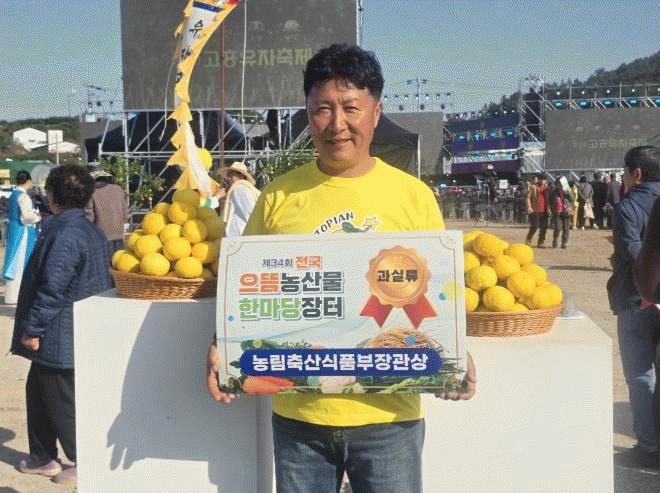 [´º½ºÅë ÃÖ¿ë¼ö ±âÀÚ]°íÈﱺÀº Áö³ 11¿ù 1ÀϺÎÅÍ 3ÀϱîÁö ¿¸° Á¦34ȸ Àü±¹À¸¶ä³ó»ê¹° ÇѸ¶´çÀåÅÍ¿¡¼ °íÈï À¯ÀÚ°¡ ³ó¸²Ãà»ê½ÄǰºÎÀå°ü»ó(°ú½Ç·ù ºÎ¹®)À» ¼ö»óÇß´Ù°í ¹àÇû´Ù.