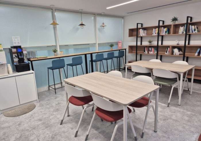 ÇÑÆÄ½°Åʹ û³â¸¶·ç 1Ãþ ¿ÀÇÂÄ«Æä¿Í ÀÏÀÚ¸®Áö¿ø¼¾ÅÍ ³» °ø°£À» Ȱ¿ëÇÏ¿© ¿î¿µÇϸç, ³¹æ ½Ã½ºÅÛ, Á¤¼ö±â µî ÆíÀǽü³À» ¿ÏºñÇß´Ù. ¶ÇÇÑ Æí¾ÈÇÑ ÀÇÀÚ¿Í Å×ÀÌºí µîÀ» ±¸ºñÇÑ µû¶æÇÑ ¡®¿¸° ½°ÅÍ °ø°£¡¯À¸·Î½á ´©±¸³ª ÀÚÀ¯·Ó°Ô ÀÌ¿ëÇÒ ¼ö ÀÖ´Ù.
