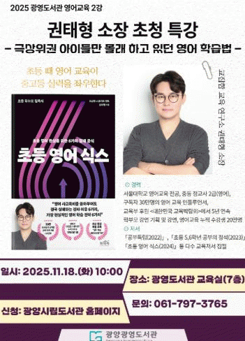 [´º½ºÅë ÃÖ¿ë¼ö ±âÀÚ]±¤¾ç±¤¿µµµ¼°üÀÌ 11¿ù 18ÀÏ ¿ÀÀü 10½Ã, ±ÇÅÂÇü ±³ÁýÇÕ ±³À°¿¬±¸¼ÒÀåÀ» ÃÊÃ»ÇØ ÃʵîÇлý Çкθð ´ë»ó ¿µ¾î±³À° Ư°À» ÁøÇàÇÑ´Ù.