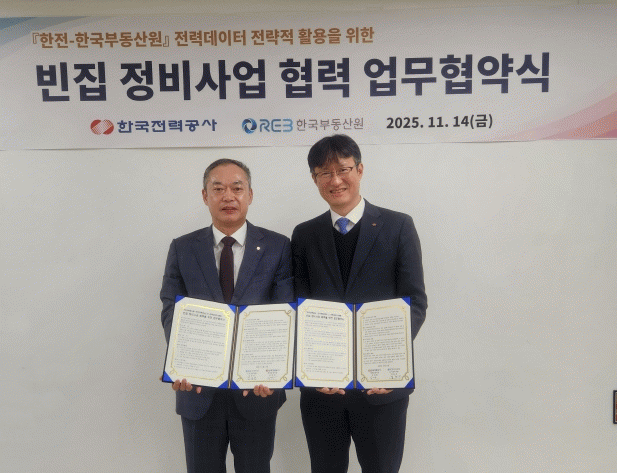 ÇÑÀüÀº 11¿ù 14ÀÏ ¼¿ï ÇÑÀü °³²Áö»ç¿¡¼ Çѱ¹ºÎµ¿»ê¿ø°ú 'Àü·Âµ¥ÀÌÅ͸¦ Ȱ¿ëÇÑ ºóÁý Á¤ºñ»ç¾÷ Çù·Â'À» À§ÇÑ ¾÷¹«Çù¾àÀ» ü°áÇÏ°í º»°ÝÀûÀÎ Çù·Âü°è ±¸Ãà¿¡ µé¾î°¬´Ù. À̹ø Çù¾àÀº ±¹°¡ Â÷¿øÀÇ ºóÁý Á¤ºñ»ç¾÷¿¡ ÇÑÀüÀÇ Àü·Âµ¥ÀÌÅ͸¦ Á¢¸ñÇØ ½ÇÅÂÁ¶»çÀÇ ½Å·Úµµ¸¦ ³ôÀ̰í ÇàÁ¤ È¿À²¼ºÀ» Á¦°íÇϱâ À§ÇÑ ÃëÁö·Î ÃßÁøµÆ´Ù.