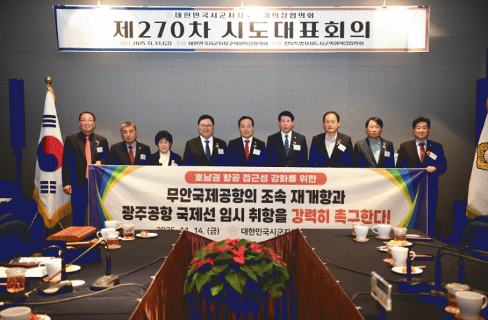 [´º½ºÅë ÃÖ¿ë¼ö ±âÀÚ]±è¸í¼ö ±¤ÁÖ ±¤»ê±¸ÀÇȸ ÀÇÀå(´õºÒ¾î¹ÎÁÖ´ç, ½ÅÈﵿ¡¤¿ì»êµ¿¡¤¿ù°î1¡¤2µ¿¡¤¿î³²µ¿)ÀÌ 14ÀÏ ÀüÁÖ ¶óÇÑÈ£ÅÚ¿¡¼ ¿¸° ´ëÇѹα¹½Ã±ºÀÚÄ¡±¸ÀÇȸÀÇÀåÇùÀÇȸ Á¦270Â÷ ½Ãµµ´ëǥȸÀÇ¿¡ Âü¼®ÇØ ¡®¹«¾È°øÇ× Á¶¼Ó Àç°³Ç× ¹× ±¤ÁÖ°øÇ× ±¹Á¦¼± Àӽà ÃëÇ× Ã˱¸ °ÇÀǾȡ¯À» Á¦¾ÈÇß´Ù.