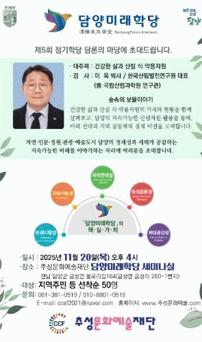 [´º½ºÅë ±è±¤¿ ±âÀÚ]Ãß¼º¹®È¿¹¼úÀç´ÜÀÌ ¿î¿µÇÏ´Â ´ã¾ç¹Ì·¡ÇдçÀº ¿À´Â 11¿ù 20ÀÏ ¿ÀÈÄ 7½Ã, ´ã¾ç±º ±Ý¼º¸é¿¡ À§Ä¡ÇÑ ´ã¾ç¹Ì·¡ÇÐ´ç ¼¼¹Ì³ª½Ç¿¡¼ Á¦5ȸ Á¤±âÇÐ´ç ´ã·Ð¸¶´çÀ» °³ÃÖÇÑ´Ù.