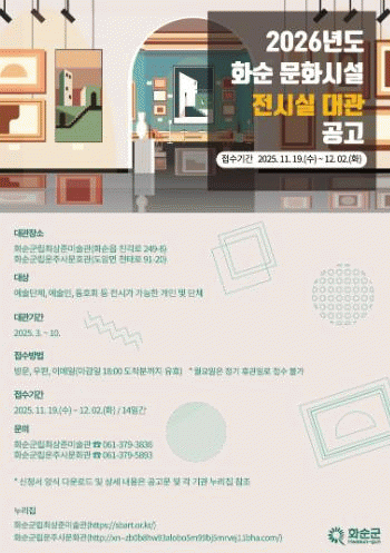 [´º½ºÅë ±è±¤¿ ±âÀÚ]ȼø±ºÀº Áö¿ª ¹®È¿¹¼ú ¹ßÀü ÃËÁøÀ» À§ÇØ ¿ª·® ÀÖ´Â °³ÀÎ ¶Ç´Â ´Üü¿¡ Àü½Ã °ø°£À» Á¦°øÇÏ´Â ¡®2026³âµµ ȼø ¹®È½Ã¼³ Àü½Ã½Ç ´ë°üÀ» ½Åû¡¤Á¢¼öÇÑ´Ù°í 19ÀÏ ¹àÇû´Ù.