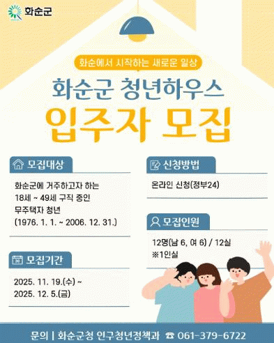 [´º½ºÅë ÃÖ¿ë¼ö ±âÀÚ]ȼø±ºÀº Áö¿ª û³âÀÇ ¾ÈÁ¤ÀûÀÎ ÁÖ°Åȯ°æ Á¶¼º°ú ÀÚ¸³ ±â¹Ý ¸¶·ÃÀ» À§ÇØ 2026³â ȼø±º û³âÇϿ콺 ÀÔÁÖÀÚ ¸ðÁýÀ» 11¿ù 19ÀϺÎÅÍ 12¿ù 5ÀϱîÁö ÁøÇàÇÑ´Ù°í ¹àÇû´Ù.