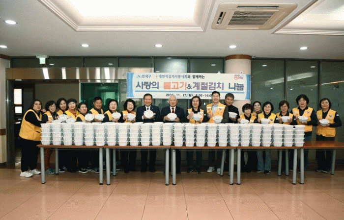 [´º½ºÅë °û¸íÈÆ ±âÀÚ]¿¬Á¦±¸´Â 11¿ù 17ÀÏ ´ëÇÑÀû½ÊÀÚ»çºÀ»çȸ ¿¬Á¦±¸ÇùÀÇȸ(ȸÀå ±è¹Ì¿Á) ÁÖ°ü 2025³â ÇϹݱ⠡®»ç¶ûÀÇ ºÒ°í±â¡¤°èÀý±èÄ¡ ³ª´®¡¯ »ç¾÷À» ½Ç½ÃÇϰí, ºÀ»ç¿øµéÀº Á÷Á¢ ¸¸µç ºÒ°í±â¿Í ±èÄ¡¸¦ Ãë¾à°èÃþ 220¼¼´ë¿¡ ¹æ¹® Àü´ÞÇß´Ù.