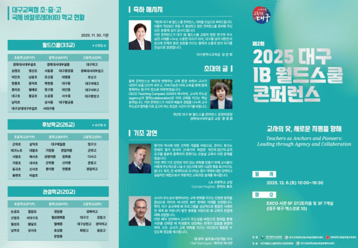 [´º½ºÅë ¾È»óµ· ±âÀÚ] ´ë±¸½Ã±³À°Ã»Àº ´ë±¸±³´ë IB±³À°±Û·Î¹úÇãºê¼¾ÅÍ, °æºÏ´ë IB±Û·Î¹ú±³À°¼¾ÅÍ¿Í ÇÔ²² 12¿ù 6ÀÏ EXCO ¼°ü¿¡¼ ´ë±¸¿Í ´Ù¸¥ ½Ã¡¤µµ ±³¿ø ¹× ±³À°Àü¹®Á÷¿ø µî 900¿© ¸íÀÌ Âü¼®ÇÑ °¡¿îµ¥ ¡®2025 ´ë±¸ IB ¿ùµå½ºÄð ÄÜÆÛ·±½º¡¯¸¦ °³ÃÖÇÑ´Ù.