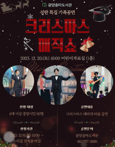 [´º½ºÅë ÃÖ¿ë¼ö ±âÀÚ]±¤¾çÁ߸¶µµ¼°üÀÌ ¿À´Â 12¿ù 20ÀÏ ¿ÀÈÄ 4½Ã ¾î¸°À̽ǿ¡¼ ¼ºÅº ƯÁý °ø¿¬ ¡®Å©¸®½º¸¶½º ¸ÅÁ÷¼î¡¯¸¦ °³ÃÖÇÑ´Ù.