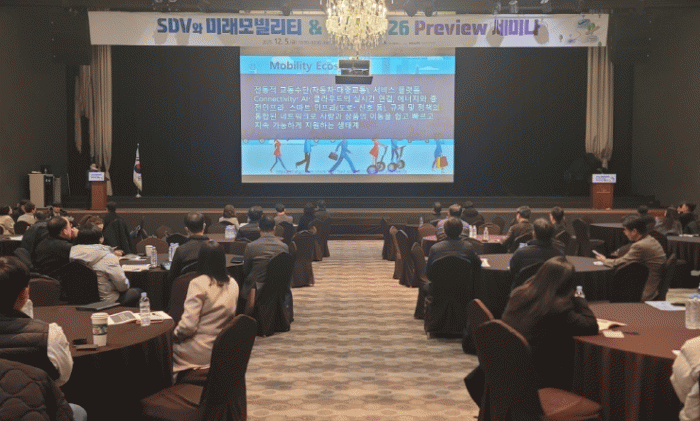 [´º½ºÅë ¾È»óµ· ±âÀÚ] ´ë±¸±¤¿ª½Ã¿Í Áö´ÉÇüÀÚµ¿Â÷ºÎǰÁøÈï¿øÀº 12¿ù 5ÀÏ ÀÎÅÍºÒ°í ¿¢½ºÄÚ È£ÅÚ¿¡¼ ¡®SDV?¿Í ¹Ì·¡¸ðºô¸®Æ¼ ¡¤ CES 2026 ÇÁ¸®ºä ¼¼¹Ì³ª¡¯¸¦ °³ÃÖÇß´Ù.