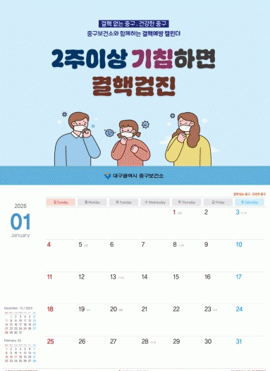 [´º½ºÅë ¾È»óµ· ±âÀÚ]´ë±¸ Áß±¸º¸°Ç¼Ò(¼ÒÀå Ȳ¼®¼±)´Â °Ü¿ïö °áÇÙ ¹× È£Èí±â°¨¿°º´ ¿¹¹æ¿¡ ´ëÇÑ ÀνÄÀ» ³ôÀ̱â À§ÇØ ¡®°áÇÙ ¹× È£Èí±â°¨¿°º´ ¿¹¹æ Ź»ó¿ë ´Þ·Â¡¯ 1,000ºÎ¸¦ Á¦ÀÛÇß´Ù.
