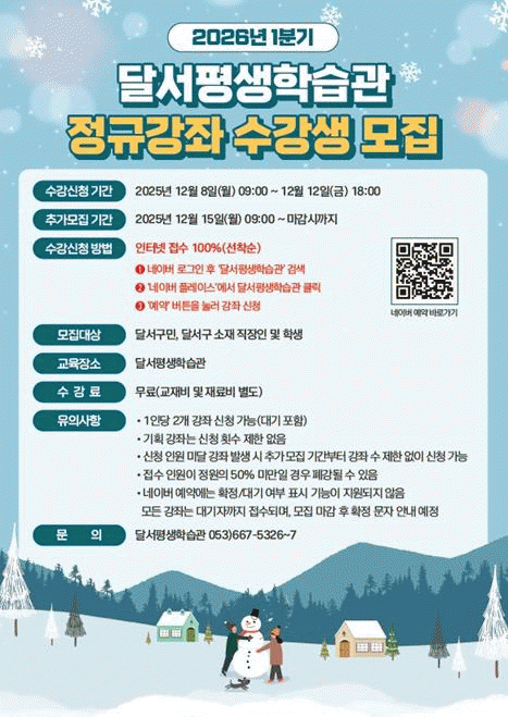 [´º½ºÅë ¾È»óµ· ±âÀÚ]´ë±¸ ´Þ¼±¸´Â ¿À´Â 12¿ù 8ÀÏ ¿ÀÀü 9½ÃºÎÅÍ 2026³â 1ºÐ±â ´Þ¼Æò»ýÇнÀ°ü Á¤±Ô°Á ¼ö°»ýÀ» ¼±Âø¼øÀ¸·Î ¸ðÁýÇÑ´Ù.