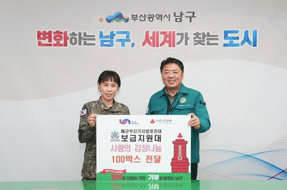[´º½ºÅë °û¸íÈÆ ±âÀÚ] ÇØ±ºÀÛÀü»ç·ÉºÎ ºÎ»ê±âÁö¹æÈ£Àü´ë º¸±ÞÁö¿ø´ë´Â Áö³ 12¿ù 4ÀÏ, ºÎ»ê ³²±¸(±¸Ã»Àå ¿ÀÀºÅÃ)¿¡ »ç¶ûÀÇ ±èÀå ³ª´® ºÀ»çȰµ¿ ÀÏȯÀ¸·Î Á÷Á¢ ´ã±Ù ±èÀå ±èÄ¡ 100¹Ú½º¸¦ Àü´ÞÇß´Ù.