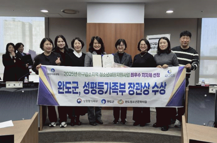 [´º½ºÅë ±è±¤¿ ±âÀÚ]¿Ïµµ±ºÀÌ '2025³â Àα¸ °¨¼Ò Áö¿ª û¼Ò³â ¼ºÀå Áö¿ø »ç¾÷' ½ÃÇà Ã¹ÇØ ÃÖ¿ì¼ö ÁöÀÚü·Î ¼±Á¤µÇ¾î ¼ºÆòµî°¡Á·ºÎ Àå°ü»óÀ» ¼ö»óÇß´Ù.