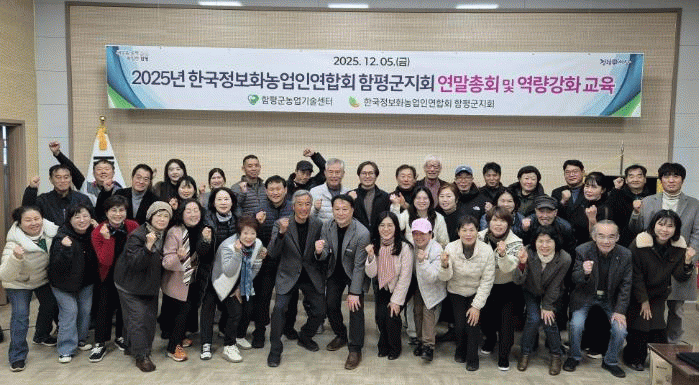 ÇÔÆò±ºÀº 9ÀÏ ¡°Çѱ¹Á¤º¸È³ó¾÷Àο¬ÇÕȸ ÇÔÆò±ºÁöȸ(ÀÌÇÏ ÇÑÁ¤³ó)°¡ Áö³ 5ÀÏ ÇÔÆò±º³ó¾÷±â¼ú¼¾ÅÍ Çöó¿öǪµå´Ù¸ñÀûȦ¿¡¼ ȸ¿ø 50¿© ¸íÀÌ Âü¼®ÇÑ °¡¿îµ¥ ¡®2025³â ¿¬¸»ÃÑȸ¡¯¸¦ ¼ºÈ²¸®¿¡ °³ÃÖÇß´Ù¡±°í ¹àÇû´Ù.
