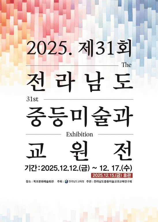 [´º½ºÅë ÃÖ¿ë¼ö ±âÀÚ]Àü¶ó³²µµ±³À°Ã»Àº 12ÀϺÎÅÍ 17ÀϱîÁö ¸ñÆ÷¹®È¿¹¼úȸ°ü 1Ãþ Àü½Ã½Ç¿¡¼ ¡®2025. Á¦31ȸ Àü¶ó³²µµÁßµî¹Ì¼ú°ú±³¿øÀü¡¯À» °³ÃÖÇÑ´Ù.