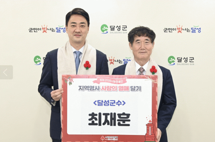 »ç¶ûÀÇ ¿¸Å Àü´Þ½ÄÀº ¡®Èñ¸Á2026 ³ª´®Ä·ÆäÀΡ¯ÀÇ ÀÏȯÀ¸·Î ´ë±¸»çȸº¹Áö°øµ¿¸ð±Ýȸ¿¡¼ Áö¿ªÀÇ ¸í»ç¸¦ ã¾Æ°¡ »ç¶ûÀÇ ¿¸Å ¹èÁö¸¦ ´Þ¾ÆÁÖ´Â Çà»ç´Ù.