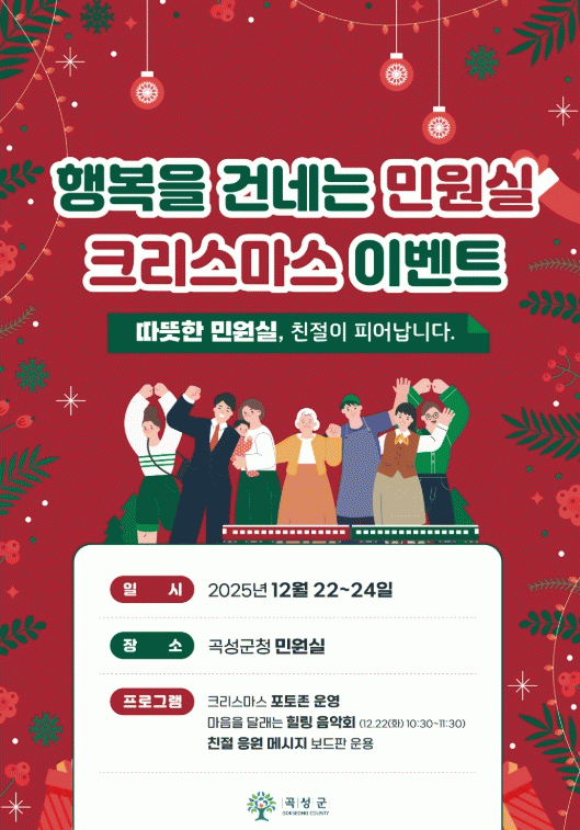 [´º½ºÅë ±è±¤¿ ±âÀÚ]Àü³² °î¼º±ºÀÌ ¿À´Â 22ÀϺÎÅÍ 24ÀϱîÁö 3ÀÏ µ¿¾È Å©¸®½º¸¶½º¸¦ ¸Â¾Æ ¡®ÇູÀ» °Ç³×´Â ¹Î¿ø½Ç Å©¸®½º¸¶½º À̺¥Æ®¡¯¸¦ ÃßÁøÇÑ´Ù°í 9ÀÏ ¹àÇû´Ù.